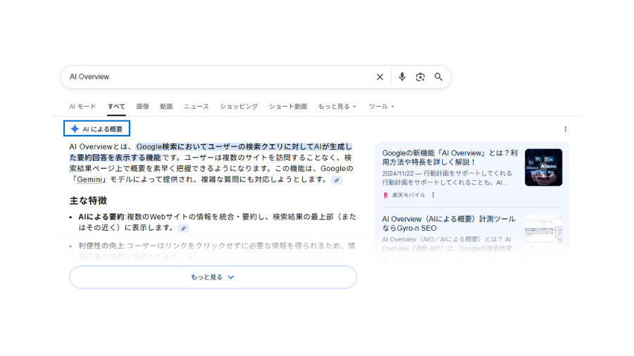 このように、AI Overviewとは「ユーザーが質問する前に答える」ことを目的とした検索の進化形です。SEO担当者にとって重要なのは、「単に検索クエリに一致するコンテンツ」を作るのではなく、検索意図の先回り、信頼性、専門性、視点の多様性といった新たな基準を意識したコンテンツ制作です。
